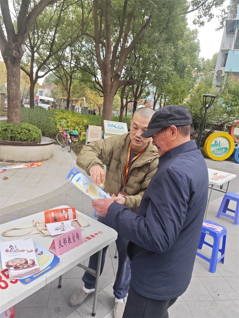 2025 年 11 月 27 日 ,沪东新村街道在博兴园广场开展反邪教宣传活动。社工结合真实案例,用通俗易懂、生动形象的语言,向居民详细揭露邪教组织的本质特征与严重危害,分享邪教引发的血泪教训,耐心解答大家的疑问。同时,社工还向居民发放反邪教宣传手册,帮助大家将抽象的防范概念转化为具体的认知与实用知识。