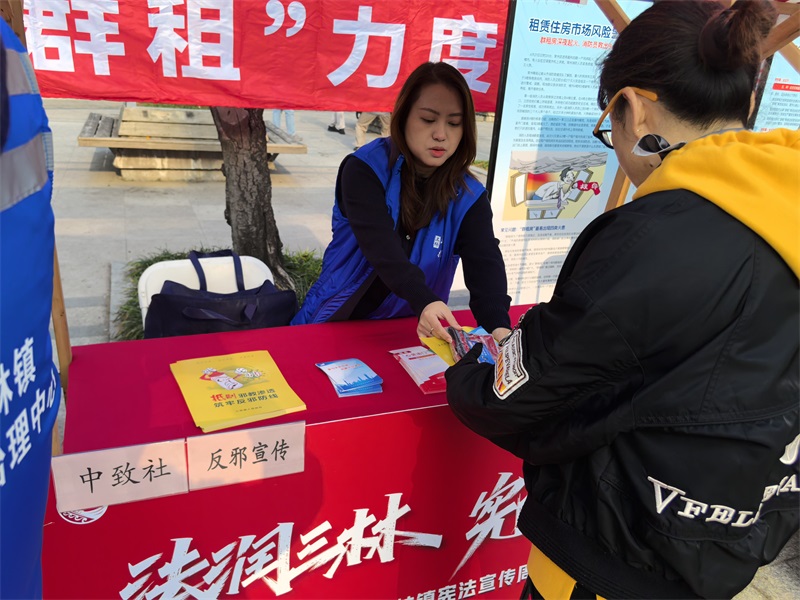 2025年12月2日,三林镇在法治公园以“法润三林 宪理未来”为主题开展反邪教宣传活动。活动现场,宣传展板整齐排列,“邪教谎称治病害命、常见的骗人手段”等案例故事向现在参与活动人群讲诉。使群众们日后做到拒邪、防邪、识邪来守护自身健康及财产安全。总计人数为300余人。