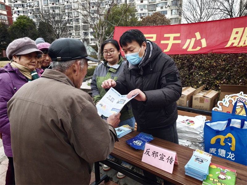 2026年3月3日上午,花木街道在龙沟居委的社区居民活动广场开展弘扬雷锋精神,便民服务活动。反邪教社工以此为契机,开展反邪教宣传,旨在提高社区居民对邪教组织的辨识能力和防范意识。