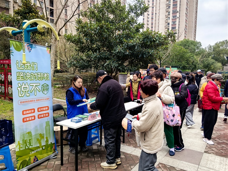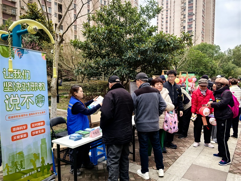 2026年3月3日,三林镇平安办在城林美苑广场组织开展了一场反邪教警示教育宣传活动。活动现场,工作人员通过设立宣传咨询台、摆放图文并茂的展板、发放宣传折页及定制小礼品等多种形式,向居民群众深入浅出地讲解邪教的本质特征、现实危害及辨别方法。此次活动巧妙地将反邪教宣传融入传统节日,让居民在欢乐祥和的氛围中学习反邪知识,有效提升了群众识邪、防邪、拒邪的意识和能力。活动吸引了社区群众广泛参与,受众人数达180余人,营造了“崇尚科学、反对邪教”的良好社区氛围。