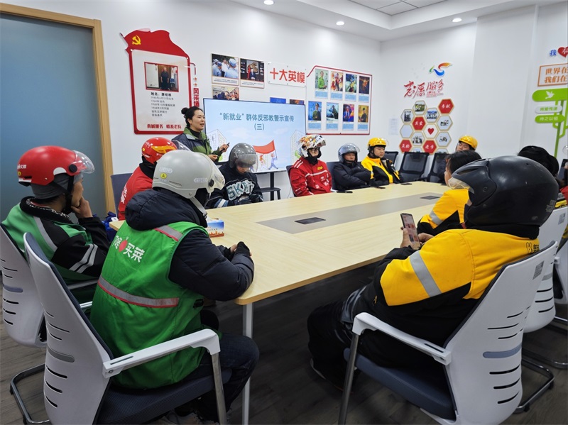 2026年3月26日,书院镇开展新就业群体反邪教宣传(三),现场通过PPT,互动小游戏等,讲解邪教组织的危害,发挥新就业群体职业的特色,鼓励他们参与平安卫士志愿者队伍。