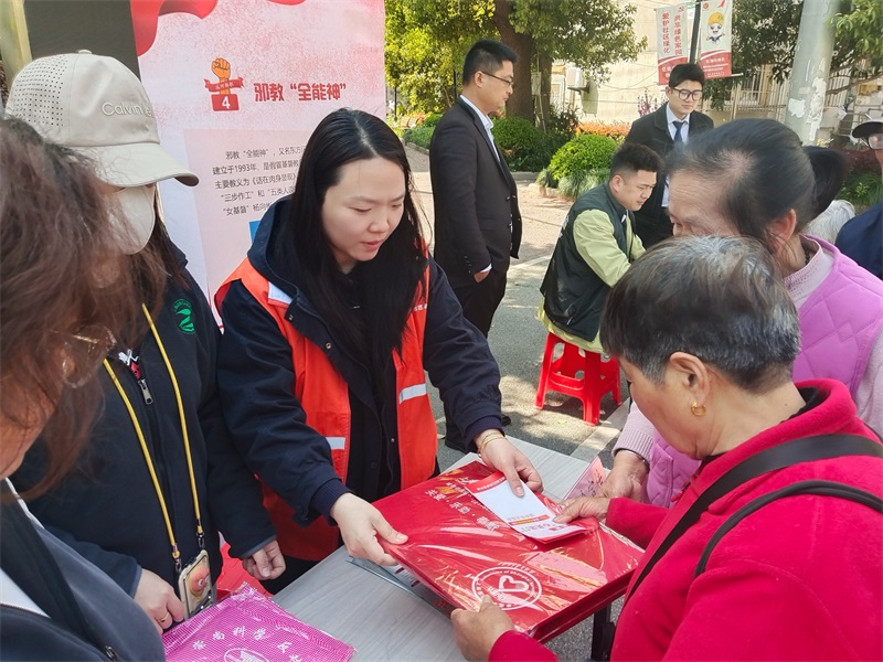 2026年4月8日上午,周家渡街道平安办在云台二小广场开展法制宣传活动,以此为契机开展反邪教宣传,受众人数约100人,发放宣传资料和小礼品100余份。