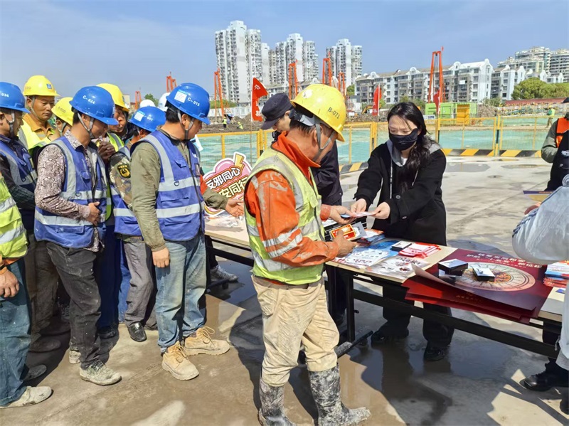 2026.4.16上午,周家渡街道平安办携手周家渡派出所结合全民国家安全教育日主题进工地开展反邪教宣传活动,发放宣传资料和小礼品100余份