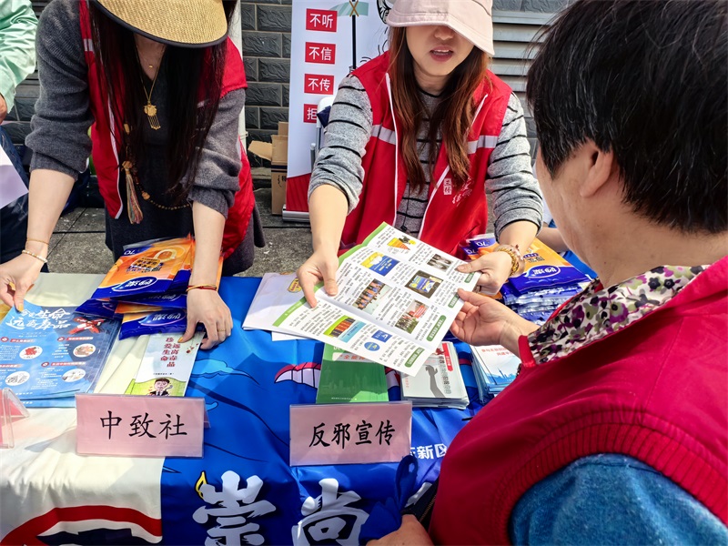 2026年4 月 10 日,三林镇借助市集活动契机,在永泰林小舍开展 “永筑泰安・永泰好邻里” 反邪教主题宣传活动。反邪教社工通过现场宣讲、互动科普等形式,向居民普及邪教危害与防范知识,引导大家认清邪教本质、增强辨别能力。此次活动吸引 300余名群众参与,现场发放宣传小礼品300 余份,有效提升了居民的反邪防邪意识,进一步筑牢了社区平安防线。