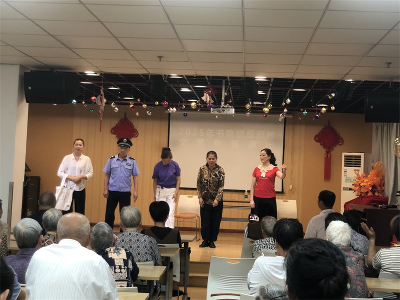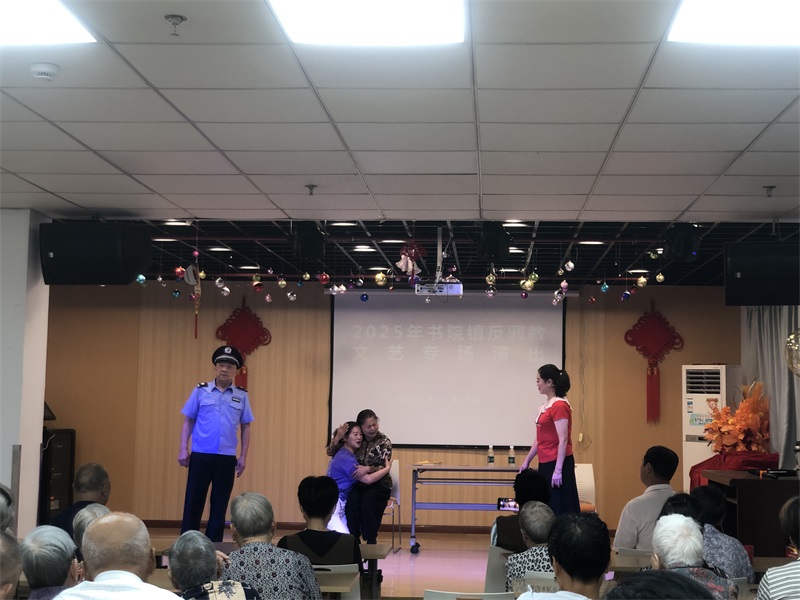 2025年10月13日下午,书院镇社区服务中心开展反邪教文艺演出活动,活动内容有小品、女生独唱、沪剧、舞蹈等,有互动反邪教知识有奖问答,通过此次活动突出邪教危害社会、危害个人的邪教特征,此次观看群众60人左右,发放小礼品环保袋60余份。