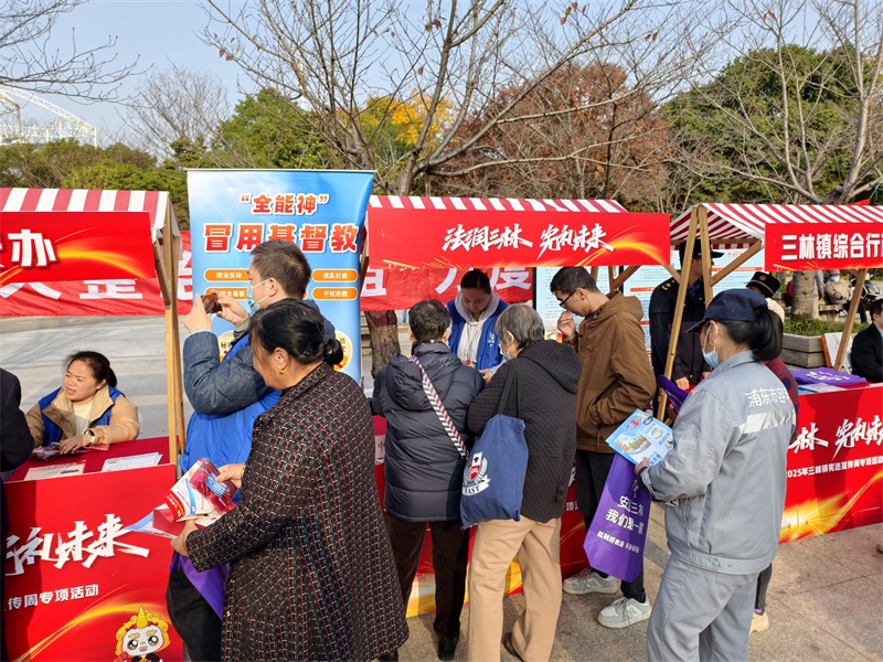 2025年12月2日,三林镇在法治公园以“法润三林 宪理未来”为主题开展反邪教宣传活动。活动现场,宣传展板整齐排列,“邪教谎称治病害命、常见的骗人手段”等案例故事向现在参与活动人群讲诉。使群众们日后做到拒邪、防邪、识邪来守护自身健康及财产安全。总计人数为300余人。