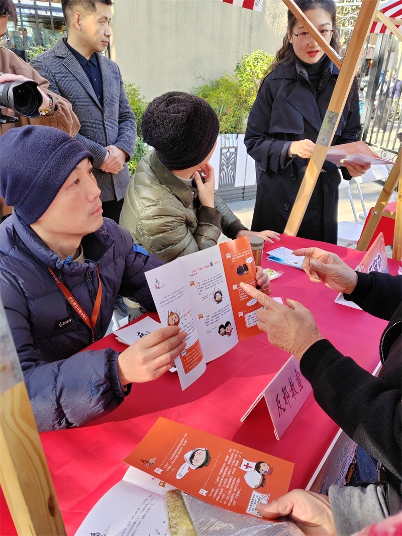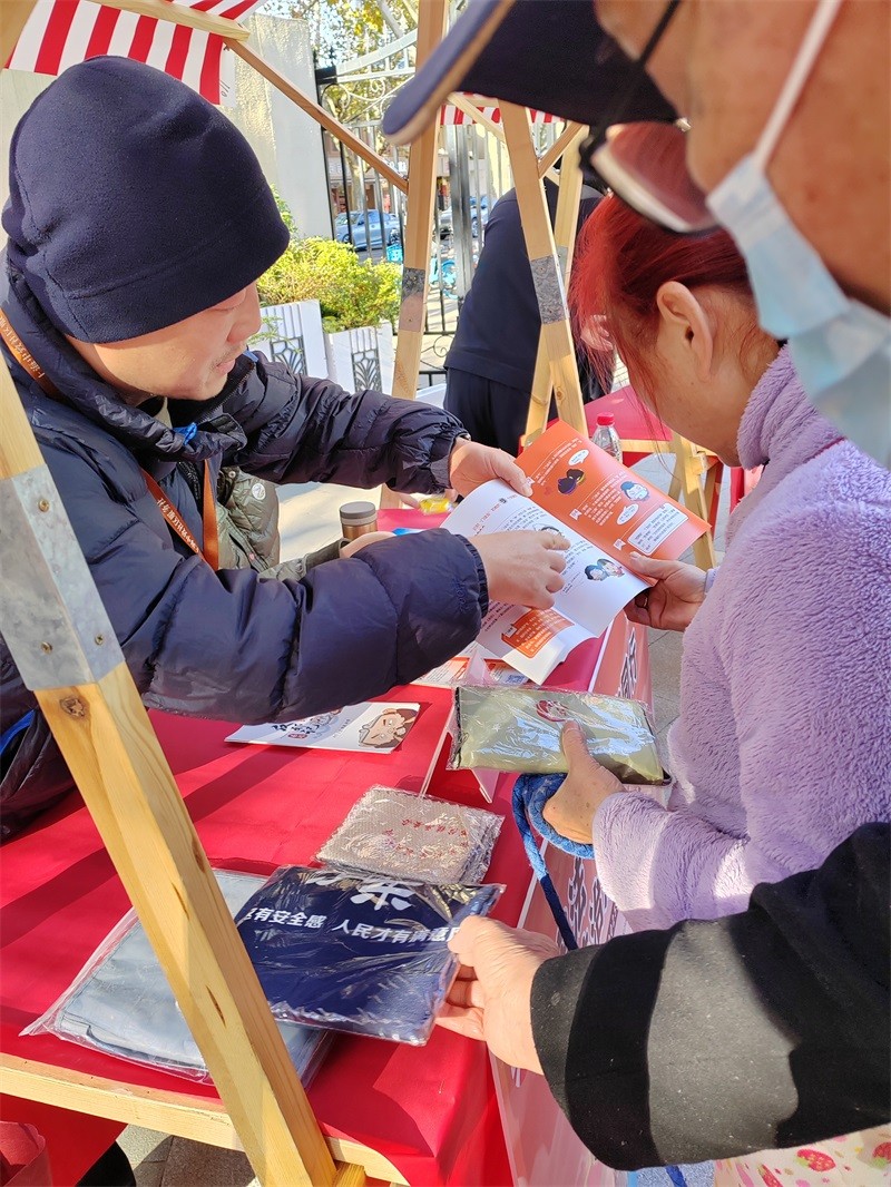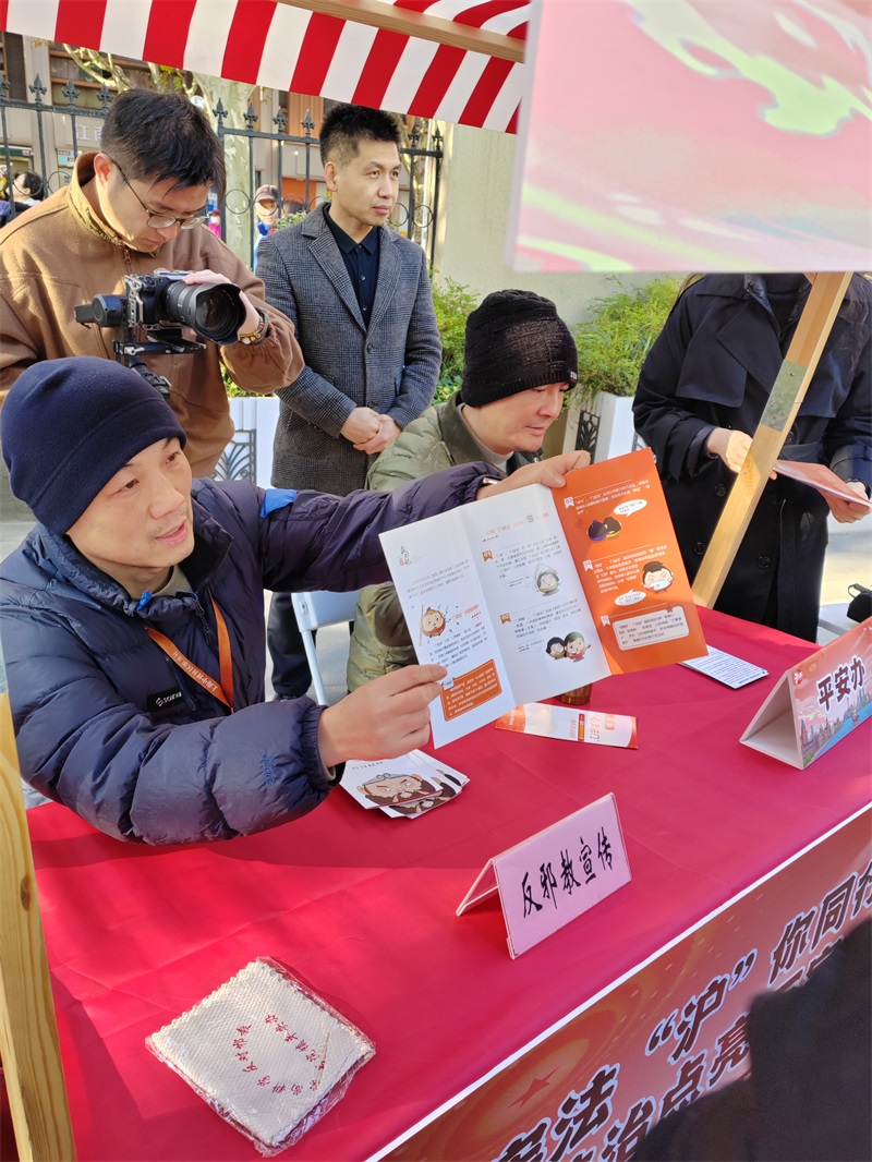 2025 年 12 月 4 日上午,沪东新村街道在博兴园广场启动宪法周反邪反诈宣传活动。现场,反邪教社工围绕宣传核心,一边向居民细致解读邪教组织的本质与危害,结合真实案例增强科普说服力;一边发放反邪、反诈宣传手册,帮助居民将抽象防范知识转化为实用认知。