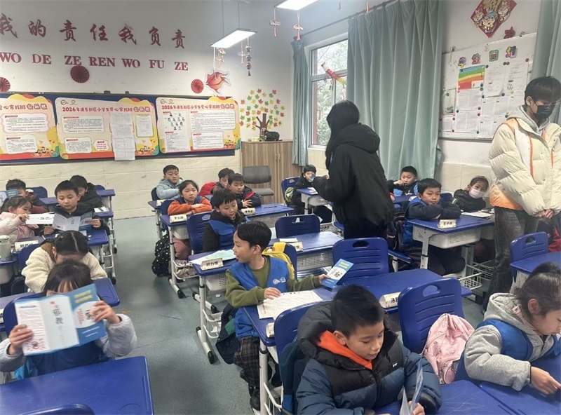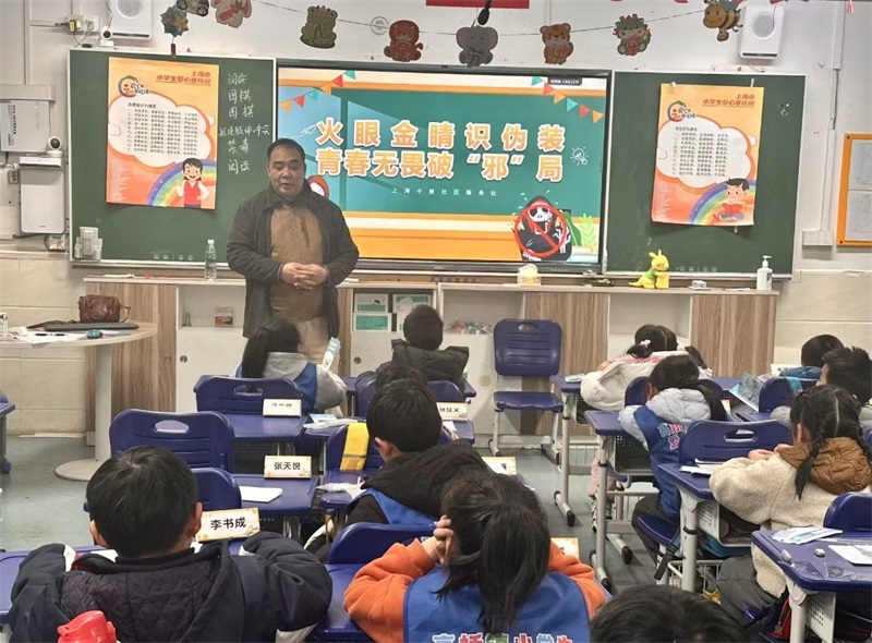 2026年2月6日下午14点,高桥镇开展反邪教寒托班讲课,课堂上学生积极互动,提升了学生们反邪识邪能力,现场还发放小礼品,及反邪教知识小册子。