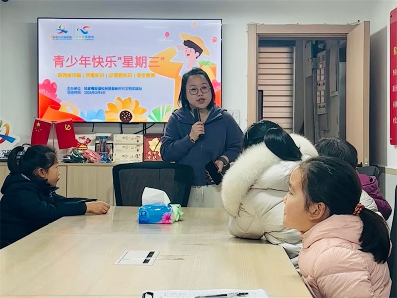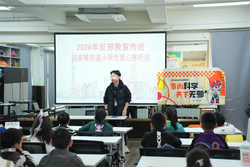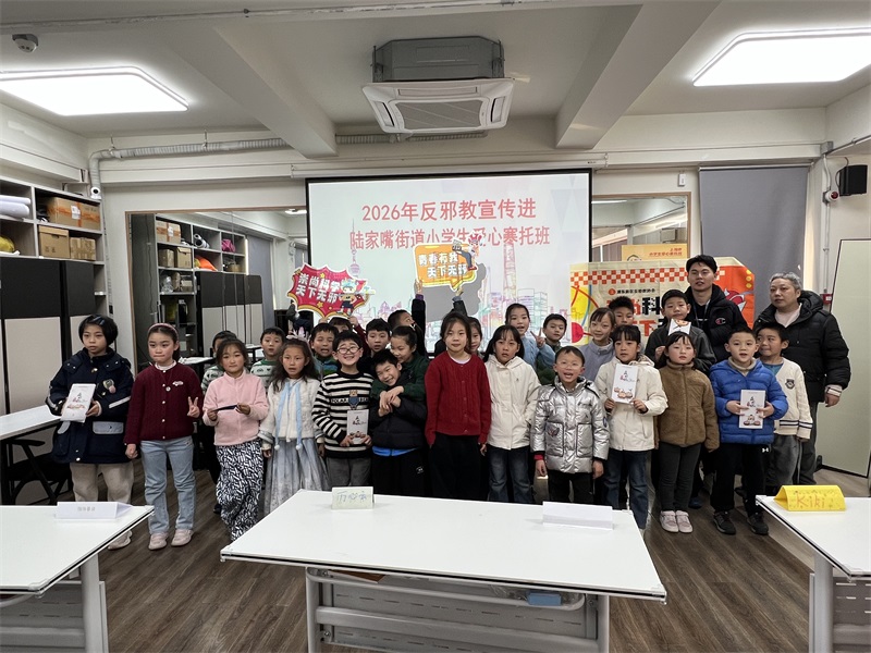 2026年2月4日,陆家嘴街道小学生爱心寒托班顺利启航。当日下午午,反邪教社工在辖区小学生爱心寒托班上,开展反邪教宣传活动。